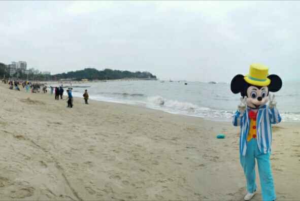 海滩有米老鼠,但合影要收费,哈哈,我可不会上当。