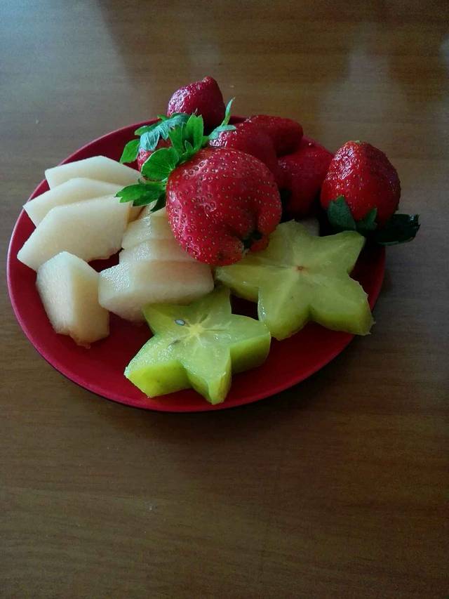 水果也切的很有爱。