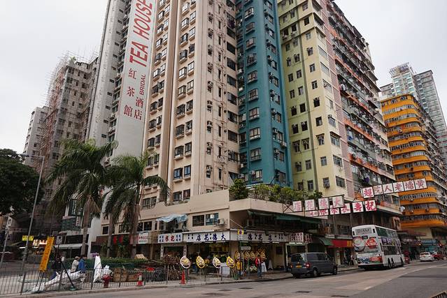 红茶馆酒店——楼下是世界殡仪馆,还有很多卖花圈的店铺,挺诡异的。