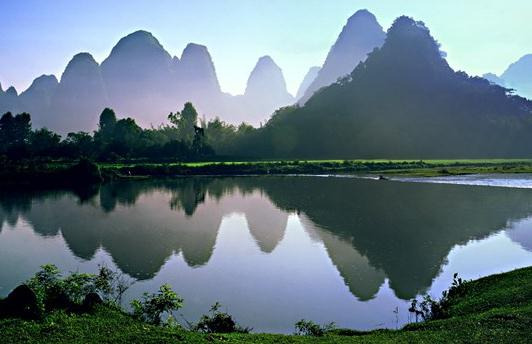 我们订了从漓江坐客轮去阳朔,一路美景不断。这里的景致有一种惊艳,以前只从水墨画中见到的景色真的出现在面前。经过两个多小时的行程,来到了阳朔。