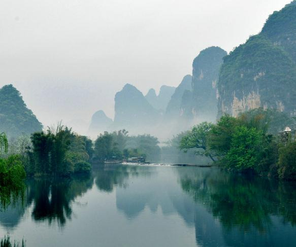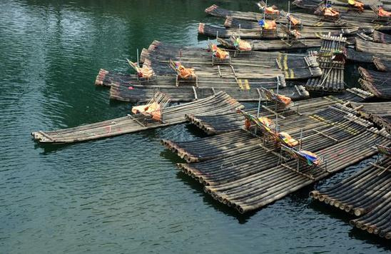 下午我们坐了竹筏,畅游在山水间,那宁静的碧水边,一座座小山云雾环绕,茂密的竹林倒映下来。仿佛进了仙景。很想在此度过此生。