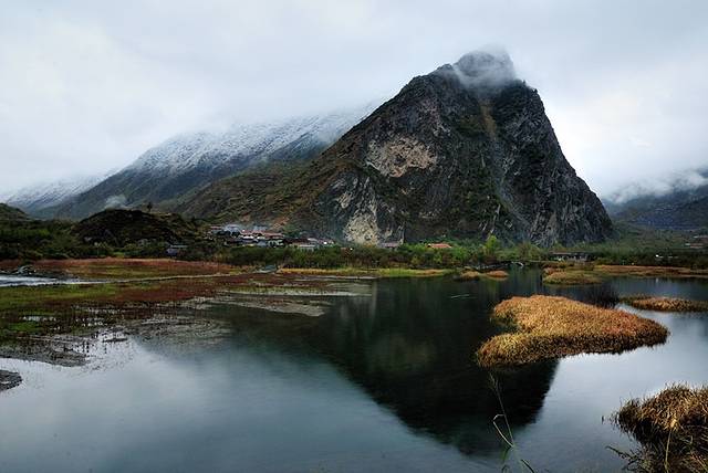 芳草海属于是景区的低海拔区,还可以算是还没有进入景区的主要景点,因为我们还没有到我们晚上要住的地方,但是远处山间的白雪就已经很明显了。