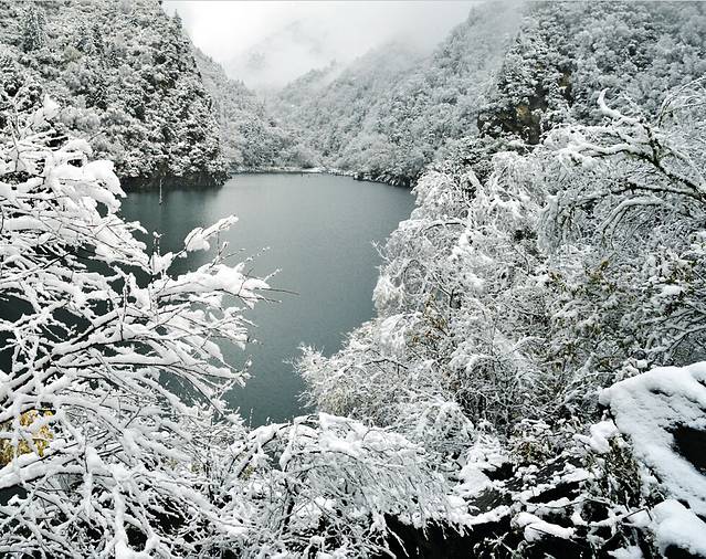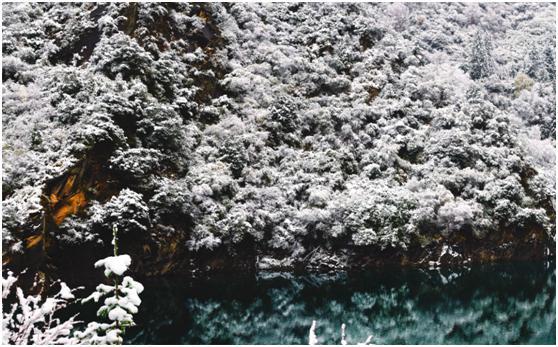 就算是在这么寒冷的天气里面,五彩池的颜色也是这样的美丽。