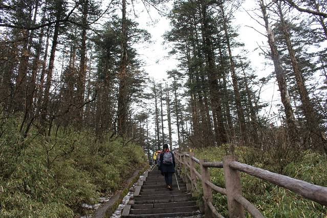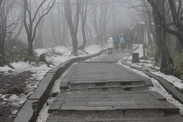 我们本来计划搭六点的车上雷洞坪,结果走了十几分钟夜路到五显岗停车场发现从这到雷洞坪的车,7点半才有。只有在报国寺搭车才有六点的车上雷洞坪,深深的背叛感啊,四点半起床呢,还有两个女生被骗说五点半就有车,四点就起床了。买票的时候,又发现被骗。店家说从清音阁到雷洞坪,再从雷洞坪返回报国寺的车70元,实际上是90元。清音阁往返雷洞坪才70元,大家一定要注意不要犯相同的错误。(之前有黑车载过游客上山,出了意外,所以现在峨眉山只准规定的旅游大巴上山到雷洞坪)七点钟售票,七点十八搭上去雷洞坪的车。一个半小时小时车程到雷洞坪,雷洞坪开始已经有积雪了,所有装备都穿到身上,绑上冰爪,开始爬,雷洞坪-接引殿-金顶,在接引殿可以买索道票坐索道,我们是爬上去,再坐索道下来,坐索道很快,3分钟就可以到。上山的索道票在接引殿买,下山的索道票在山上买,上行的索道65元,下行的索道55元,我们一路上走走停停,好在景色够美,再辛苦都值了。雪挂在树上,颤颤悠悠的,山上全是雪白,仿佛进入了全白的世界。同学都是第一次看到雪,兴奋的不得了。很多人都像我们一样边爬边玩,还打起了雪仗,不过越往上,越没雪。我也不知道原因,所以趁有雪的时候,赶快玩起来吧~我们算是爬的慢的,两个小时十几分钟到达山顶,吃了泡面和腊肠(腊肠好好吃,大家可以试一下),去看了大佛。我们就坐索道下山了,实在是太累了。下山比上山滑很多,我同学就滑到了。到达报国寺之后,一下车就有到成都的车(50元到新南门车站),又是两个多小时。晚餐在井巷子的市井生活解决。味道还不错,环境也很有成都的味道。吃饱就去看了蜀风雅韵(在去哪儿网上购买的甲等票每人150元,还送了小吃,如果坐在后面看不到什么。)川剧,人偶戏,皮影戏,滚灯,二胡、唢呐表演,变脸。挺精彩的,演员妆容特别精致。值得一看。