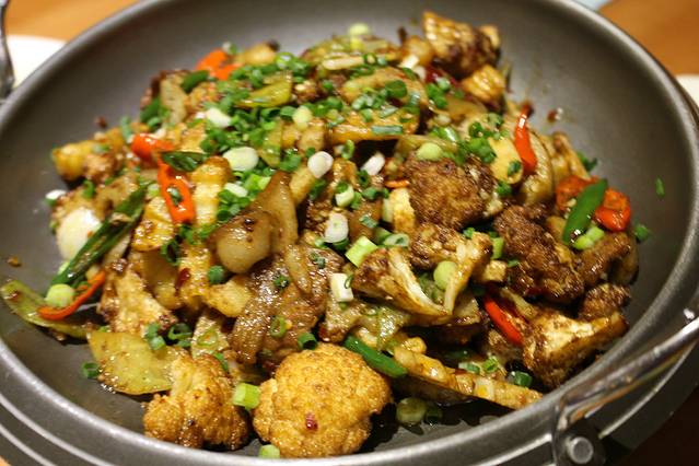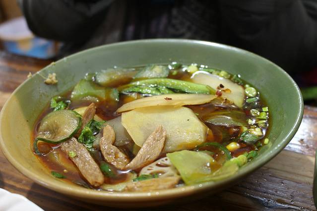 因为在成都花费过多,所以在重庆就尽量紧衣缩食,碰巧今天又下雨。所以今天中午就去附近的翠河小厨吃了午餐,团购的代金券,很便宜又好吃。推荐辣子鸡(就是鸡丁太少了)、香锅素什锦、蒜苗炒土