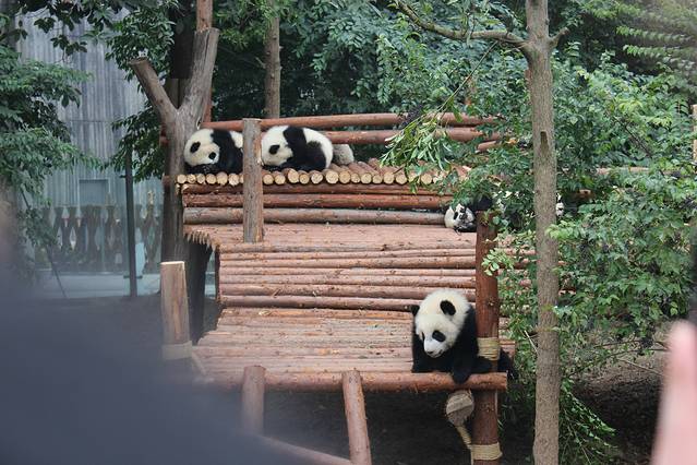 早上8点半从青旅出发,到宽窄巷子买票(这个票包括了门票、讲解服务,接送)价格比旅行团便宜,又方便。主要是从熊猫基地到三星堆转车太麻烦,所以坐这个车就很方便,而且整个行程走下来也不是很赶,想走这两个点的伙伴可以考虑一下。他免费把你送到武侯祠去搭他们的专门的大巴,导游很热情,有什么问题都可以问。从武侯祠到熊猫基地是40分钟车程,因为熊猫基地很大,所以是买了10元往返的电瓶车票,把时间花在重点上,就是看熊猫~~~。如果要步行的话,花费时间比较久,想直接看熊猫,就直接坐电瓶车到月亮产房。先去了月亮产房看了成年和幼年的熊猫,熊猫萌萌的,亲眼看到国宝的感觉,还是很激动的。之后去了熊猫2号别墅,看的小熊猫,小熊猫不是大熊猫的孩子,是另外一个品种,因为他们在树上太灵活,没照到正面,只照到了背面。看完熊猫,又看了个关于熊猫的小电影,更了解了熊猫,因为我们要赶去三星堆的旅行大巴,就买了在路边的面,没想到大家都觉得挺好吃的,接着是一个小时的车程到三星堆博物馆,主要讲的是古蜀的文化起源,如果不感兴趣的话,可以不去。不过里面环境还是不错的,1个小时20分钟的车程回到武侯祠,正好是五六点,很多人拦的士,我们就搭了个黑车,30元到了文殊院,吃了洞口张老二凉粉的甜水面、黄凉粉、红油水饺。味道都不错。推荐。又去了对面的龙抄手店,点了钵钵鸡,龙抄手,钟水饺,素锅盔,最好吃的当然是钟水饺啦。吃完还没饱,又去找了陈麻婆豆腐来吃(也在附近)陈麻婆豆腐名不虚传,超级超级麻。吃饱后,去了宽窄巷子的隔壁子酒吧,(观音山里面的酒吧取景是在他家分店,九眼桥那边拍摄的),五个人点了6瓶啤酒,300元,晚上还有中国好声音第二季那英组学员声音乐团来演唱,现场效果不错。觉得我们好幸运。