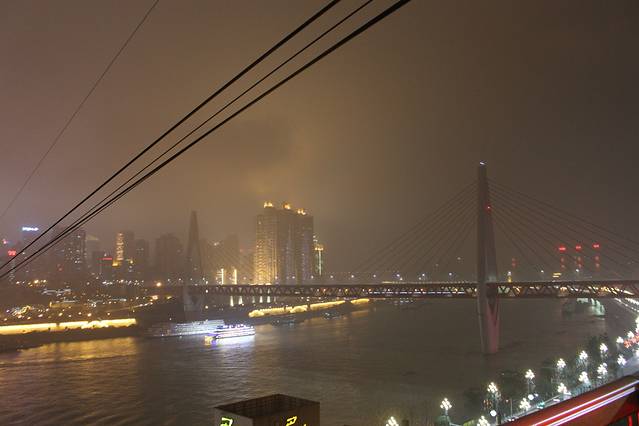 猪。吃饱就去附近的IMX看了霍比特人,第一次在出去旅游的时候看电影啊~在这看电影超便宜,网上团购普通的才17元。看完电影,去新华路(解放碑附近,问路,20分钟左右)坐长江索道(单程10元,往返20元)到上新街,再从上新街坐公交到南山一棵树,我们之前没查,坐过了站,又往回走。因为那一天下雨,雾蒙蒙的,看到的夜景还不如在索道看到的夜景。。。留给人遗憾的重庆,不过我相信所有的一切都是最好的安排。南山一棵树不建议去,看不到什么景致,还要15元门票(学生半票7元),下山也麻烦,观景台在的位置附近没有公交车站,还有硬拦的士才可以。非常麻烦。晚上去诸葛烤鱼吃的江回鱼,基本,没有刺。超级好吃超级好吃,超级推荐这家。我们选的口味是巴蜀酸菜味。还点了两个菜也挺好吃的,火烧赤壁(豆腐和鸡蛋)、炒小白菜。这一顿五个人花费258元。