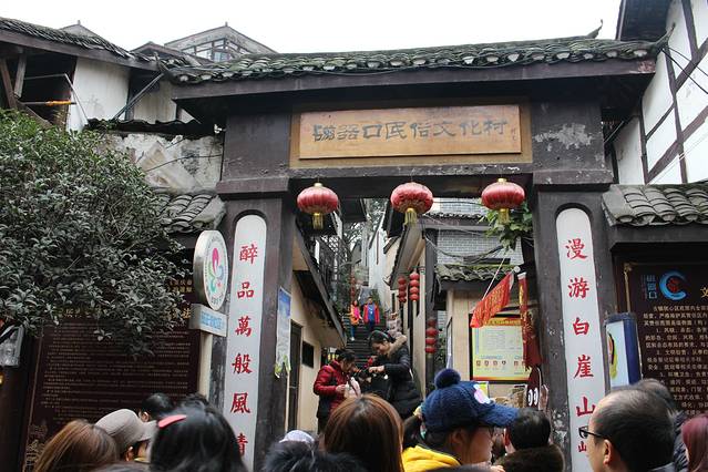 中午到磁器口吃早餐和午餐。坐轨道到磁器口站下,根据指示,就到了磁器口的大门,路两边都是饭店性质的,吃了一家重庆小面的豌杂面和小面,味道还不错。顺着街道一直向前走,十几分钟就到了大部分都是小吃的磁器口,我们吃了陈麻花的麻花,对比了陈昌银的麻花,觉得还是陈昌银的好吃,就买了这家的,就在磁器口的入口。重庆酸奶还是可以尝一下的,加了红豆的就比较甜,没那么酸,喜欢吃酸的伙伴就不用加,鸡杂的味道感觉一般,没有想象中那么有特色。在磁器口边走边吃,看到有一个民俗文化村,实际上就是一个小农村,吃饱了可以爬一爬,台阶上有青苔,比较滑,要注意。逛完磁器口,我们就找了一个小型团(30元一个人),从下轨道就有人问的有没有人白公馆、渣滓洞。接送和讲解,如果不是对红岩精神特别感兴趣,建议不要去。。。。。。这两个地方,就是外地人来重庆旅游去的地方,本地人根本不会去。如果去这两个点,还不如花时间逛重庆周围的景点。更值。例如武隆和丰都鬼城。