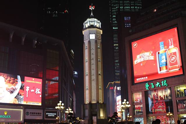 解放碑有很多吃的,很多商城,所以想要购物的妹子,尽管来逛,价格也还可以。我们中午是团购了一家舌尖记忆的店,吃的还挺开心的,还在他家免费打印了照片,吃饱就回青旅补眠,谁叫重庆下雨,去哪都不方便。晚上出来觅食,去了附近的八一小吃街,酸辣粉真的是一级棒,终于吃到正宗的了,连不喜欢吃薯粉的同学,都吃的超香。川北凉皮也不错。山城小汤圆没什么特别,红糖糍粑味道不错,如果是潮汕来的同学,那就不用吃了,和潮汕一种小吃很像。又吃了烧烤,羊肉串比较好吃~。洪崖洞就在沧白路上,一定要晚一点去,等夜来临,这样才最漂亮,像海市蜃楼,顺便吹了一下江风,凉凉的,很舒服。很惬意。站在长江边上,静静的呆着。。。别有一番滋味。