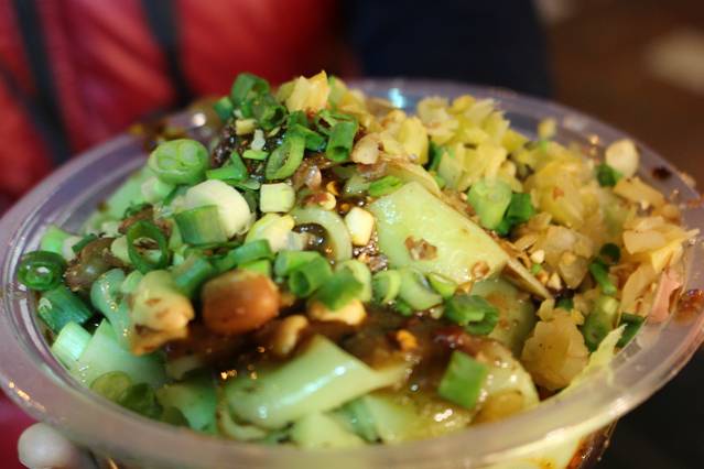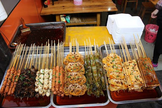 早上9点从青旅出发,先到了附近的宽窄巷子,宽窄巷子分宽巷子、窄巷子,隔壁还有一个井巷子。在入口的这家梁记肥肠粉吃的早餐,味道还可以。冒菜有点咸,抄手很麻,逛宽窄巷子的时候感受到了成都人民的慢节奏生活,很多店都没有开门,路上空荡荡的,不知道是因为我们来的太早了,基本上都没人,就这么慢悠悠的走,慢慢的逛,感觉走着走着都要睡着了。。。但是很喜欢这种悠闲、舒适的生活。宽窄巷子大部分都是比较小资的店,还有那种民间手艺,捏泥人那些,在宽窄巷吃了糖油果子,味道一般,嚼起来口感有点像口香糖,外面是由红糖包裹的,还吃了冰粉(冰粉里面放了红糖,甜甜的)顺着蜀南大道直走,大概十几分钟,就到了琴台路,完全是因为卓文君那句:只愿得一人心,白首不相离,火起来的琴台路,没什么好看的,对面就是百花潭公园,里面一堆老年人在跳舞,成都真是适合养老的地方。出了百花潭公园,问路到了附近的青羊宫(大概十几分钟),这附近还有杜甫草堂,金沙遗址,浣花溪公园。青羊宫就是个道观,学生价5元,别人都在认真的烧香,我们五个逗比就在那拍照,因为觉得杜甫草堂没啥意思,就去逛了浣花溪公园(不用钱),浣花溪公园的景色还不错。里面有湿地,公园里应该还有稀有的植物的,但是我们没有注意到。之前看一个攻略,在锦里那边有个吃铲铲的店,很有名,中午的午餐本来打算到那里解决,结果人家下午5点才开始营业,只好作罢,打的(11元)去了锦里吃东西。我们一致觉得锦里的感觉和宽窄巷子很像,都是那种建筑和氛围,在锦里胡吃海喝了一番,不得不说锦里的东西味道一般,如果真想品尝好吃的成都小吃,建议去小巷子自己慢慢找,如果只是尝个新鲜,锦里的小吃种类还是很多的,吃完了吃的,就逛了隔壁的武侯祠,武侯祠是唯一一个君王和大臣合葬的地方(刘备和诸葛亮),如果感兴趣的可以请个讲解,我们就当遛食,逛了一下,里面风景还不错,之后我们搭334公交车到了东御街,走地下通道到了春熙路附近,去银光广场吃了九宫一堂(团购的)吃的很饱,味道还不错。一天的成都市区之旅结束。