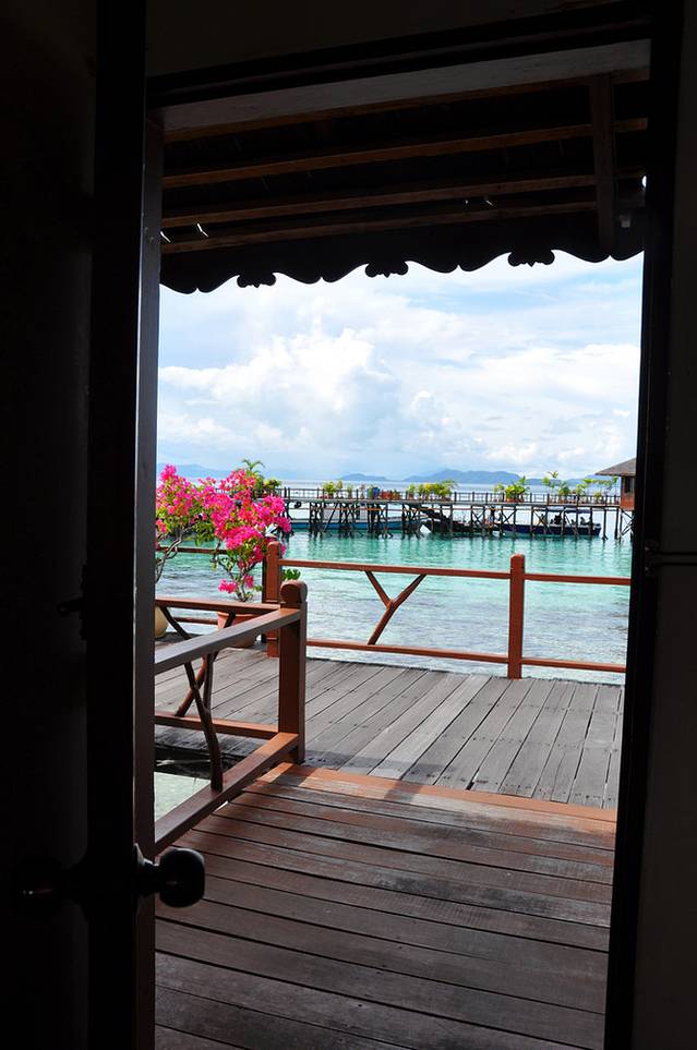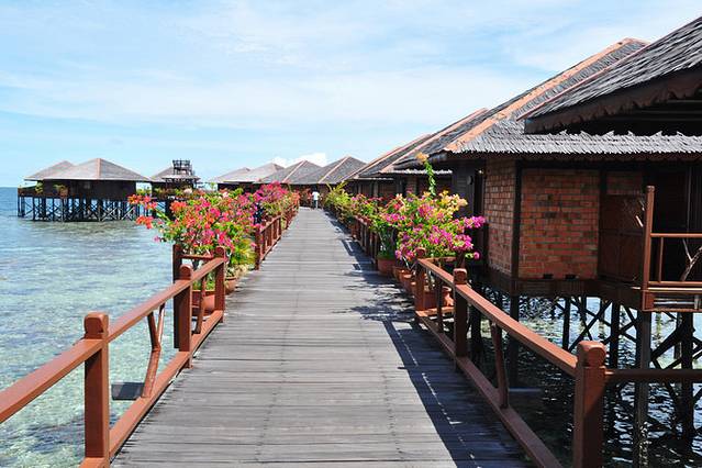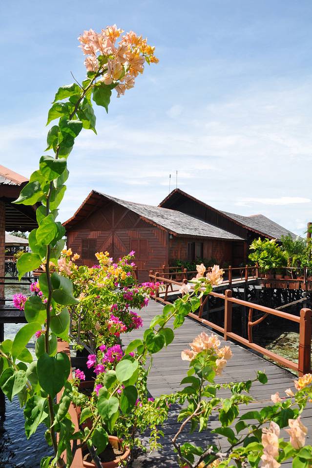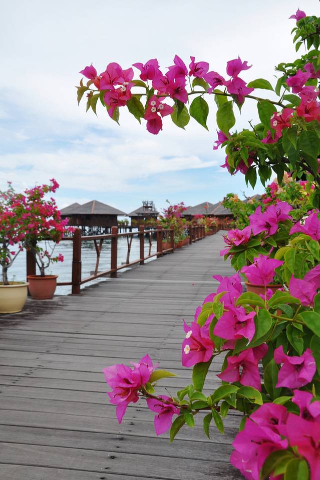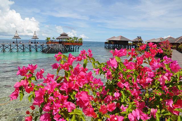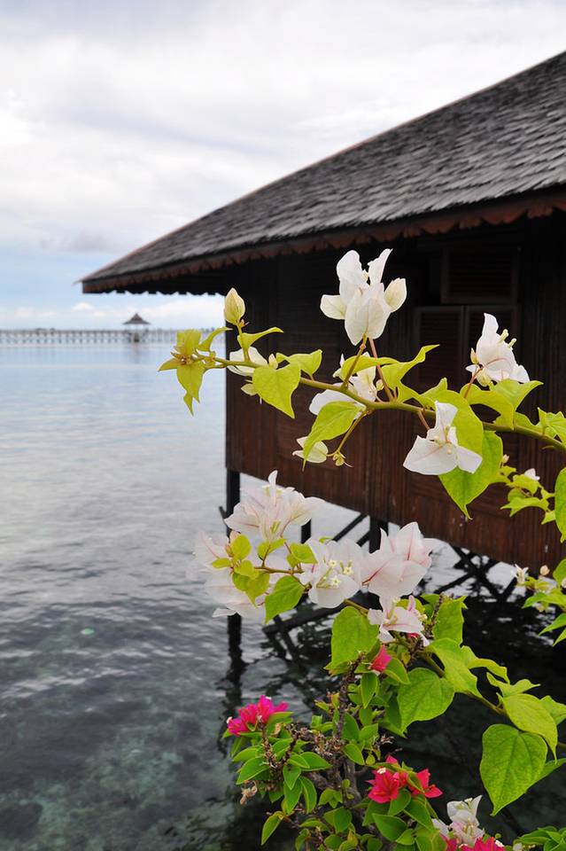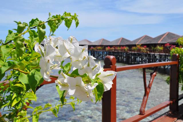 飞行时间很短,半个小时后,抵达斗湖机场,和度假村的司机接上头,开始漫长的登岛之路~~70分钟的车程到达仙本那码头,搭乘快艇50分钟,海陆空联运足足一个上午之后,终于在11点抵达马布岛西巴丹水上屋度假村Sipadan Water Village Resort,蓝天碧海之中花开不败的SWV,仿如世外桃源。