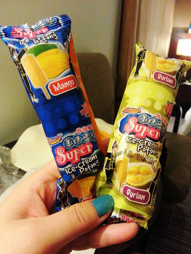 步行回到酒店(大概15分钟,途中还进了两家特产小店逛逛),楼下便利店买了芒果雪条和榴莲雪条,2马币一支,浓郁啊浓郁!逛吃逛吃的新年第一天,圆满结束~~