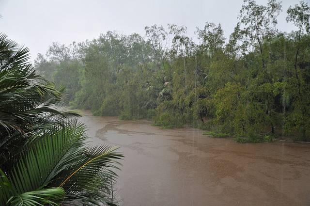 在水上餐厅下午茶时,暴雨如注的红树林~~~