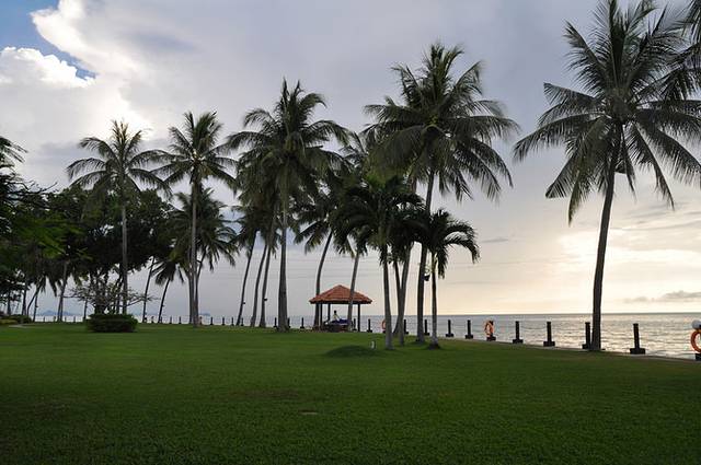 吃完下午茶回酒店休息了会儿,四点半出门打车去香格里拉看最美落日~~市区过去的确挺远的,30马币,够吃一顿冯业再打包一杯橘子冰了啊。。。到丹绒亚路还比较早,在日落吧点了饮料和沙爹肉串慢慢等,说实话,亚庇的香格里拉挺厚道的,虽然房价很贵,但是毕竟坐拥世界最美落日的海滩啊,性价比还是远胜大海南那些个奢华酒店的~日落吧的饮料酒水价格也不算贵,可不像国内,带上五颗星的就拼命宰你没商量~~~