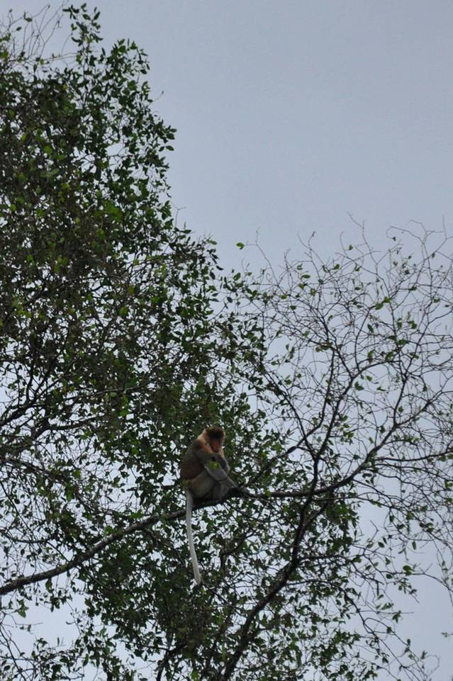 到酒店休息了会儿,一点钟,小林的车子就来接我们去红树林(Weston红树林长鼻猴及夜游萤河,小林代理,170马币/人,他们的网站www.skylandadventures.com,邮箱lianjiayou@yahoo.com)。从酒店出发时,亚庇开始下雨了,两个小时的车程就一直在忽而暴雨如注忽而细雨绵绵中度过,到了Weston码头,又是一场暴雨,原以为要在暴雨中遗憾而归,结果,人品大爆发,我们的船要出发时,雨停了!看到了长鼻猴和长尾猕猴,灵长类动物就是身手敏捷,蹭蹭的在林子里窜~~