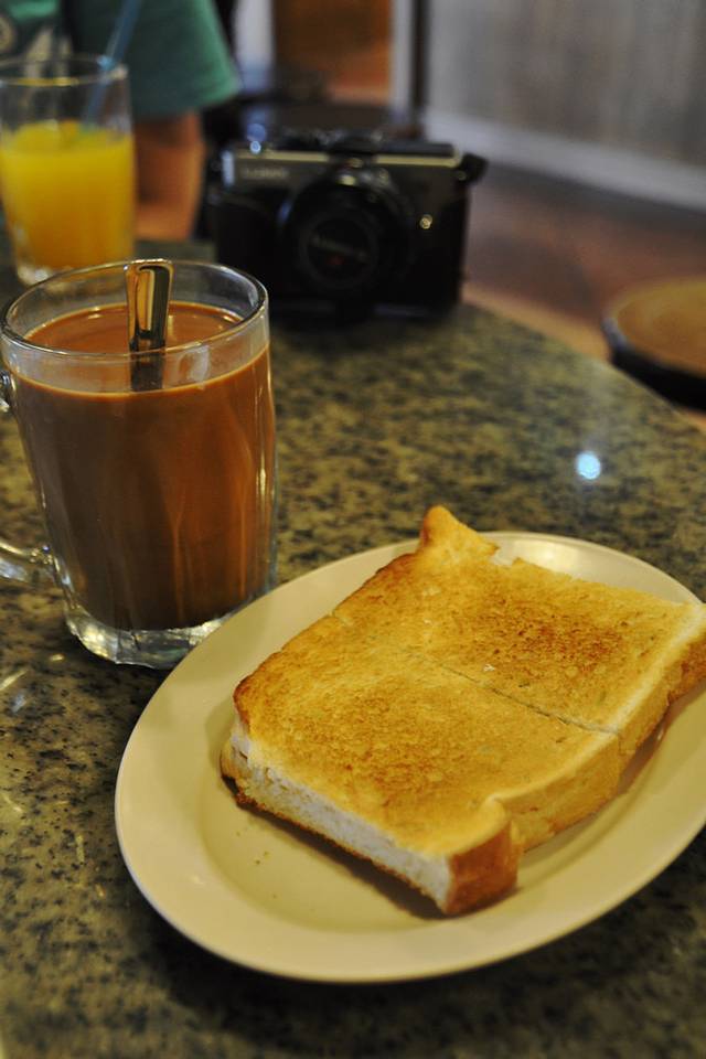 早起先马路对面“富源”吃个早餐,自助区有米粉、蒸点、炸物、炒饭等等,面包咖啡和果汁要柜台单点,我们要了炒米粉(味道怪,不推荐)、鱼肉烧卖(鱼肉Q弹,不错)、豆沙饼(酥皮加豆沙馅儿,很中式的味道,喜欢)、炸豆腐包(偏油),又点了一份烤白面包加黄油(最好吃的白面包,木有之一),一杯白咖啡(很赞很赞,回味无穷)一杯橙汁,很丰盛的一餐才19.8马币,物美价廉!