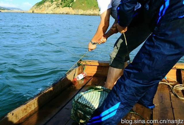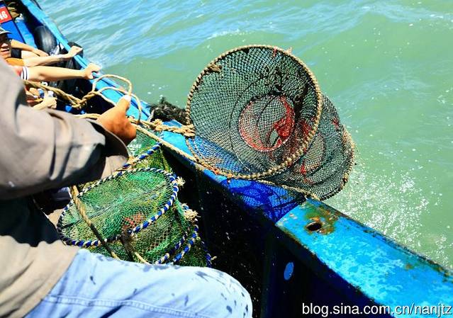也可以单独租一艘这样的小平板船,随鱼民出海收鱼笼,起获的海鲜都归你,门市价为50元/人 ,可以讨价还价。