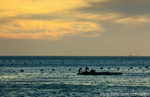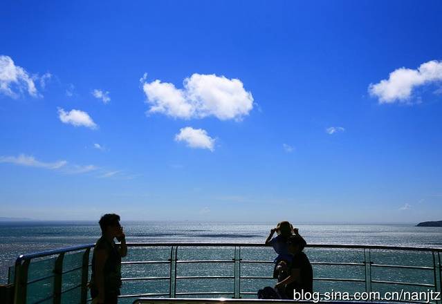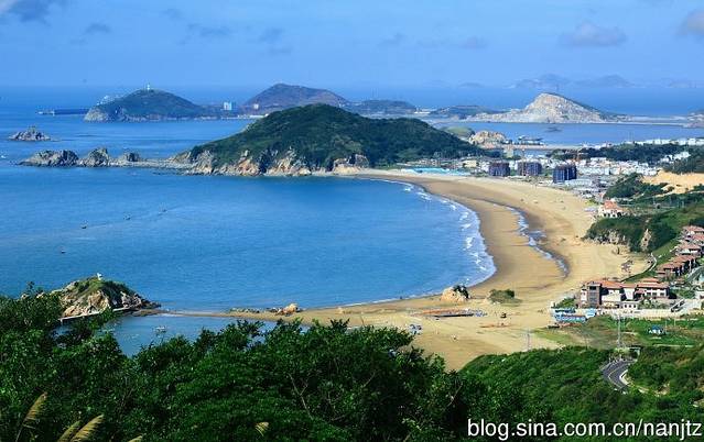 下午搭乘中巴环岛游览,先去大悲山景区山顶公园俯瞰列岛风光,参观军事炮台遗址,远眺情侣沙滩、老鼠礁,欣赏嵊泗渔民画,灵音寺进香拜佛,门票10元/人。泗礁景区,以连绵亘长的金色沙滩为特色,著名的基湖沙滩和南长涂沙滩,各长达2000米以上,地处同地地段两个相反方向,犹如彩蝶双飞,实属国内罕见。这是南长涂沙滩,朝北。
