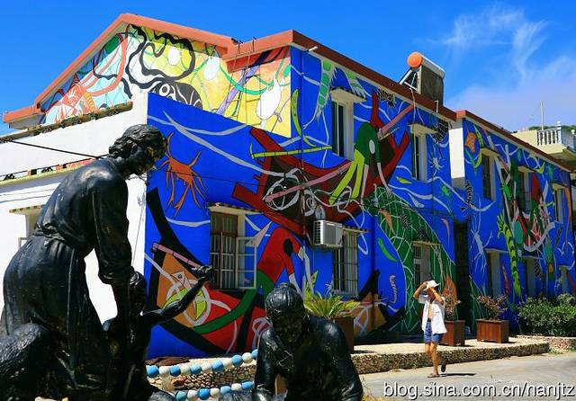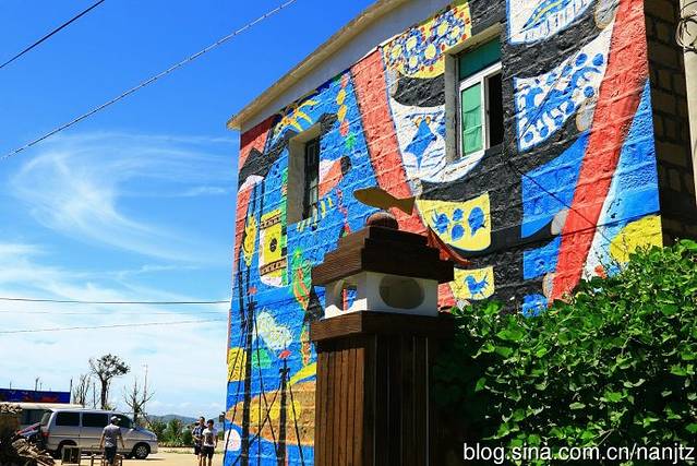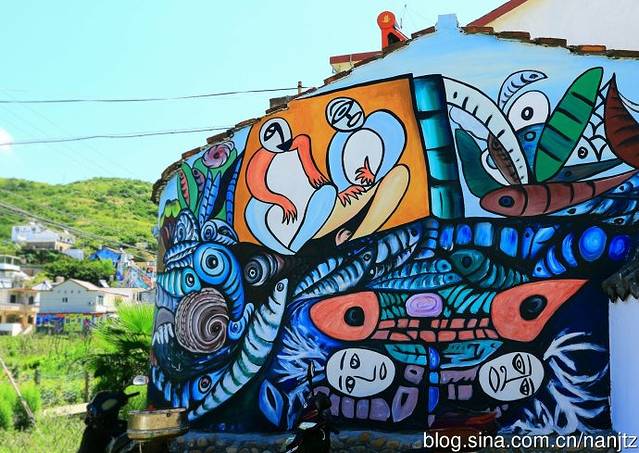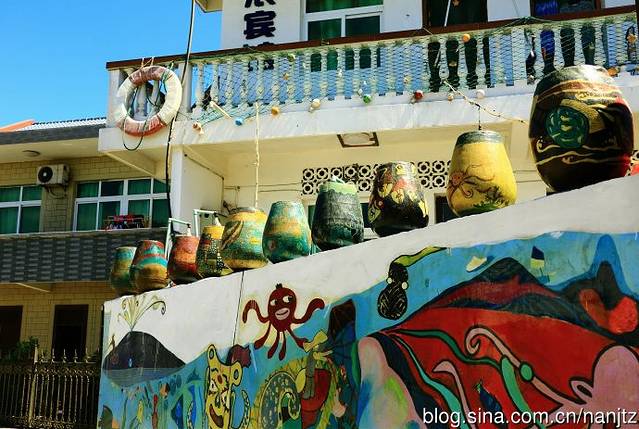 田岙村就在大悲山下,从和尚套景区回来路过。渔家壁画使是该村近年来声名鹊起,壁画最大的特点是想象丰富,用色大胆,展示了渔家的理想追求和渔民们的生活 情趣。田岙村几乎家家户户都开渔家旅馆,虽然规模不大,但是设备齐全,房内电视、空调一应俱全,独立的卫生间,干净整洁,时间多的可以在这小住一天。