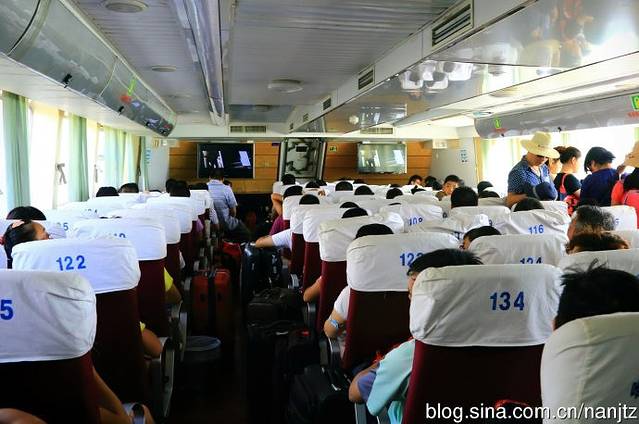 这种小船一般可以座十一个游客,救生衣是必须的。