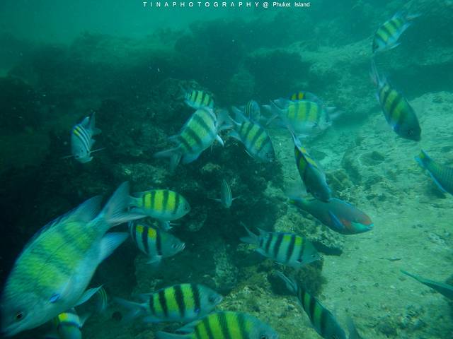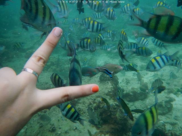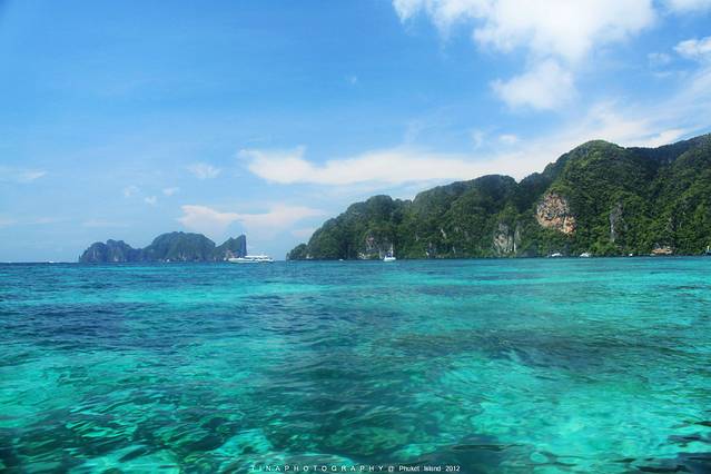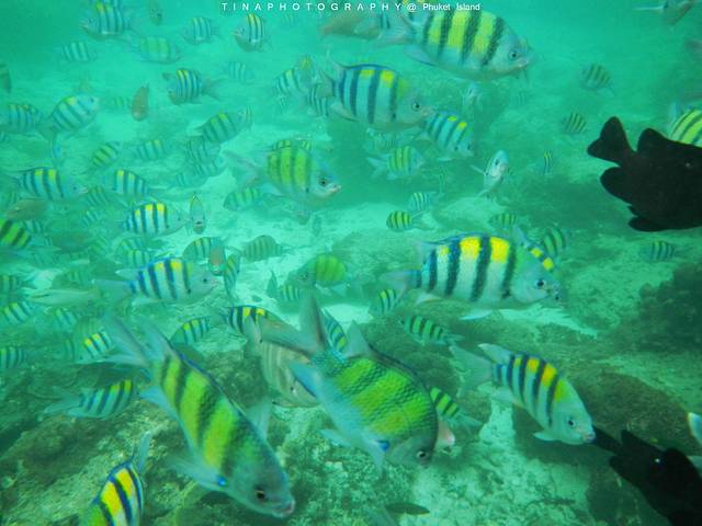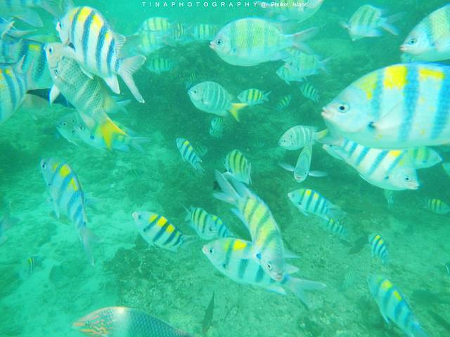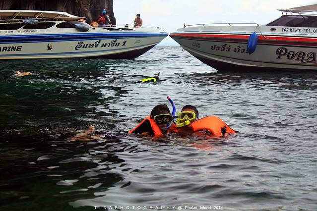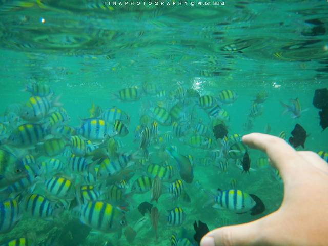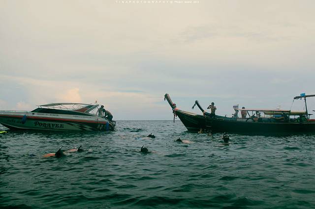 离开了玛雅湾,下站应是去小PP浮潜。而当路过这片海域,看见有大批人群在这里,原来这才是最佳的浮潜地。船老大在船尾大喊了一声问我们要不要在这里浮,如见这般清澈的海水和鱼群,二话不说,就是它啦!!!