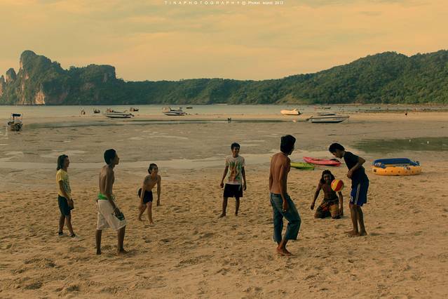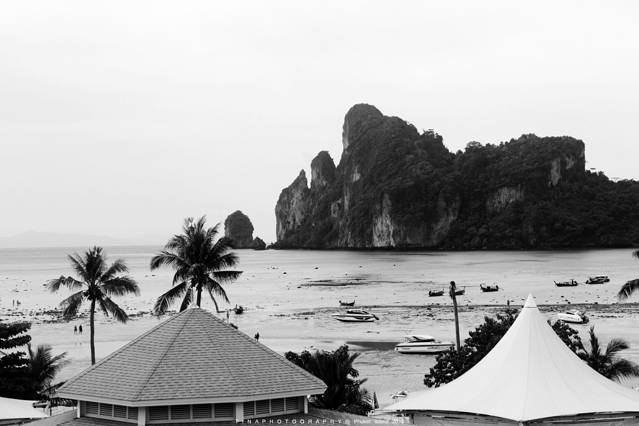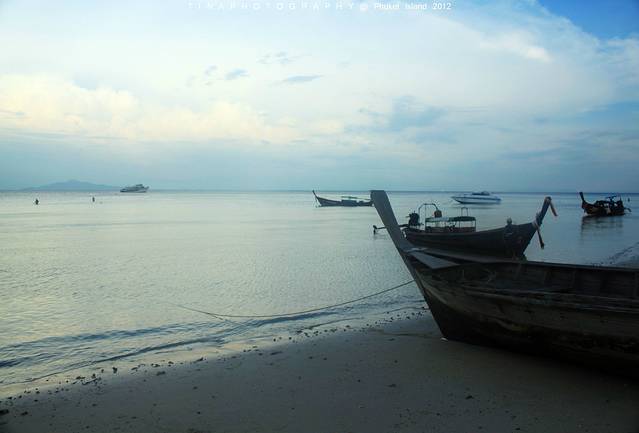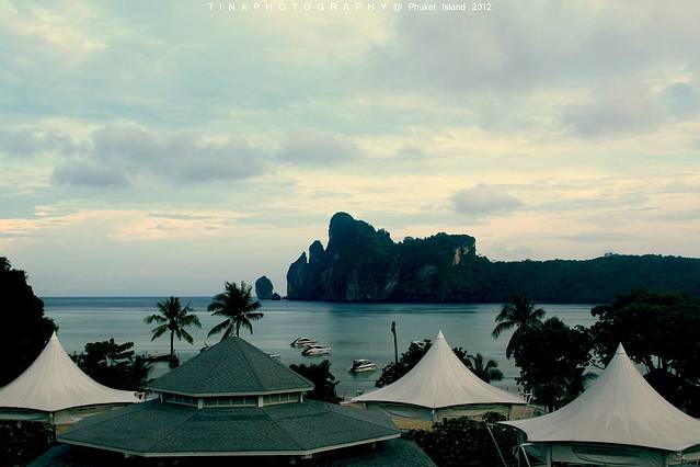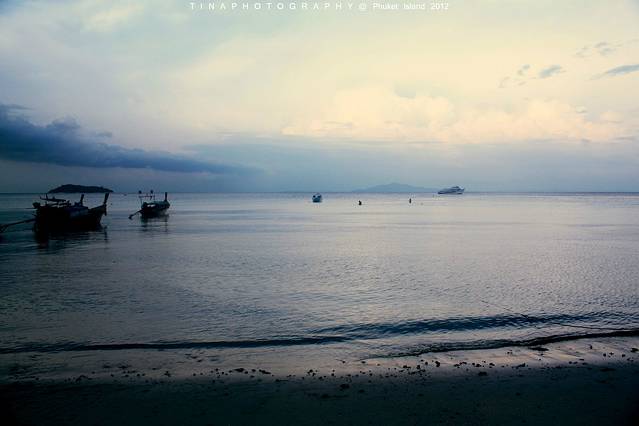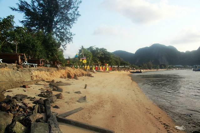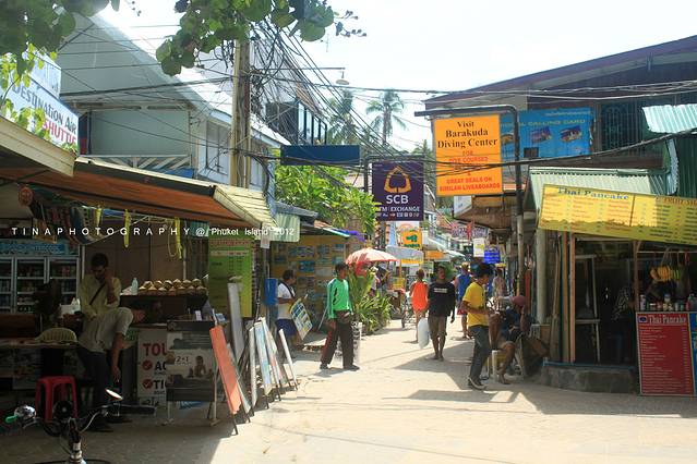 已接近傍晚,光线不是很好,在通塞湾码头的海滩是PP岛上比较差的海滩,因为这里是酒吧,餐馆,小商店的聚集地,比较适合白天浮潜累了,晚上来个丰富的夜生活。