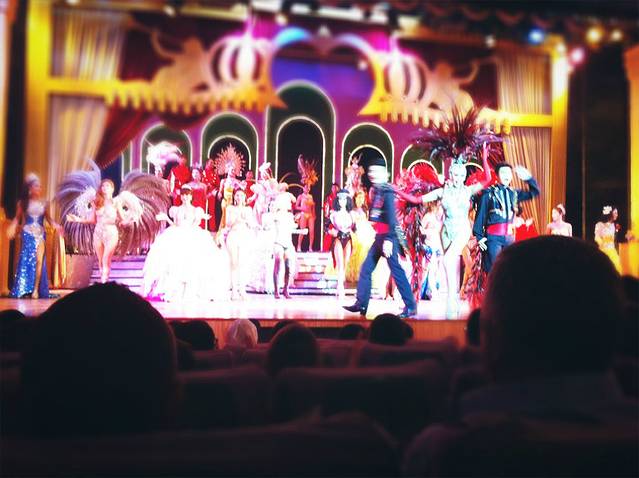 预订了当天晚上的西蒙人妖表演秀。在网上提前在代理商订好票,会有车子准时到酒店接你。在车上与同行人询问了一下价格还属我订的便宜。500B/人,而且位子也相当靠前啊,俺真是个有能力的好青年~