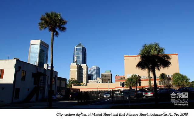 Jacksonville的街道上出现了棕榈,其实,俺一直觉得,没有棕榈就不算南方,没有棕榈在海滩,就没有南国海疆风情。此前的Mobile、Pensacola主街上,大多还是别的温带乔木,落叶乔木或者青松,缺了点氛围。