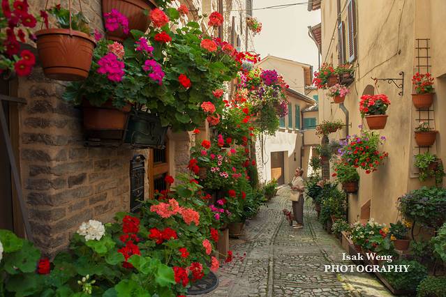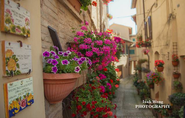 我居住在意大利,不钟爱历史沉沦的罗马,不钟爱文艺复兴的发源地佛罗伦萨,不钟爱充满时尚气息的米兰。却被意大利的迷人小镇夺走了所有的视线。其实我一直都很喜欢游小镇,不用抱着攻略看着地图像完成任务一样找着景点,不用排队买票,就这么悠闲的逛着。不管一个人旅行还是二人世界,都是那么惬意舒适。我已经是第三次去看spello的花节了。