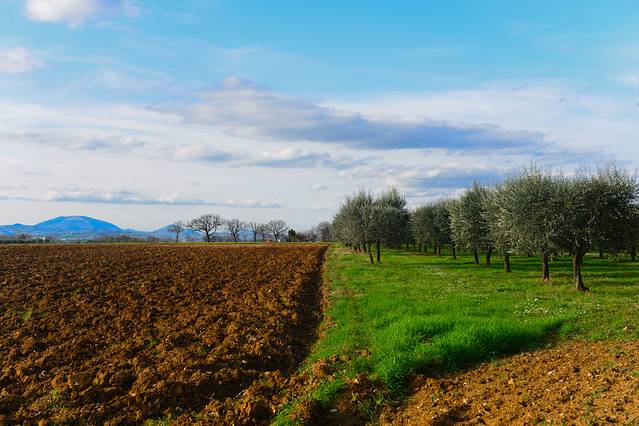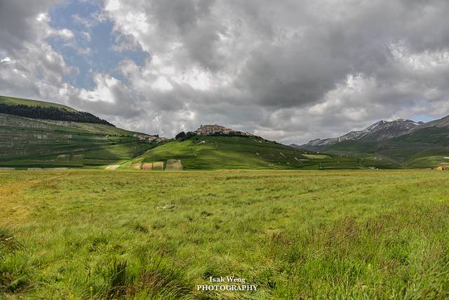 小镇在山上,远处就是一片翁布里亚特有的田园风情。