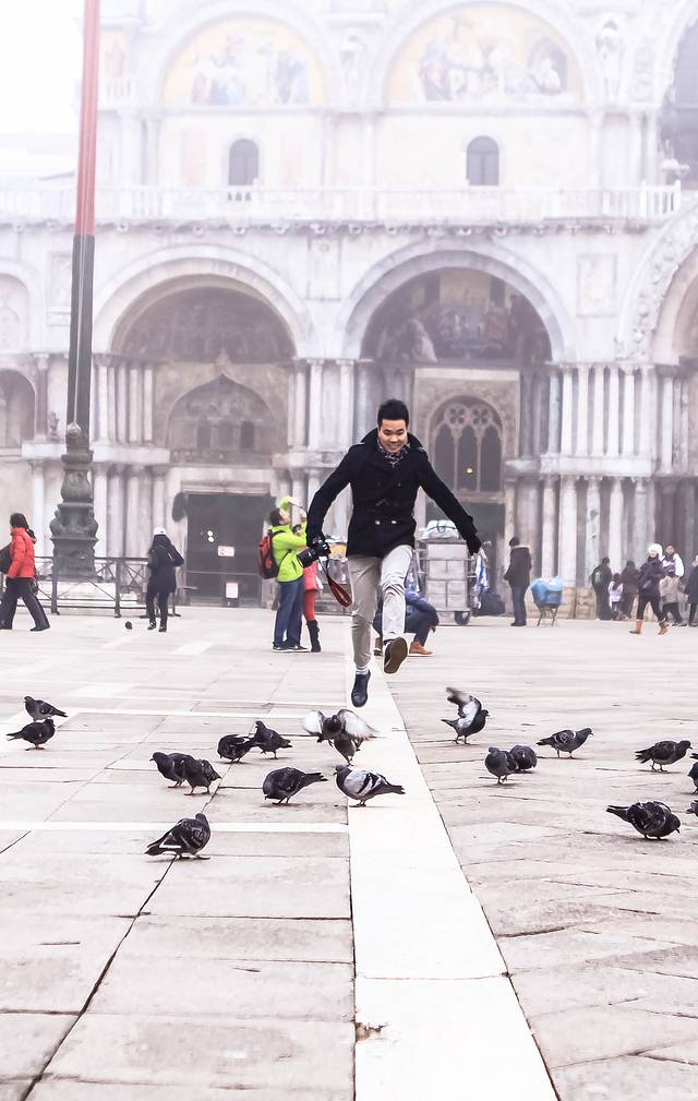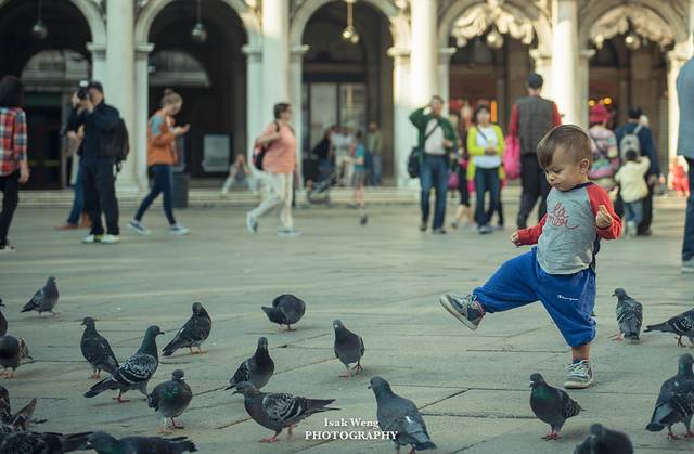 无论是米兰duomo教堂前,还是威尼斯圣马可广场,都不乏小孩嬉戏鸽子的情景