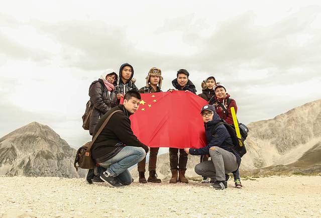 这是我们在休息站休息时的合照.。。这个时候我觉得少不了国旗