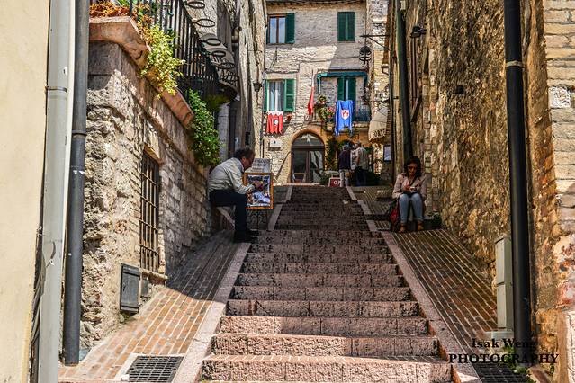 assisi,每条街道,每一个广场都非常的恬静,时不时还传来悠扬的琴声,甚至听不到任何不属于这里环境的声音。这里适合疗伤,这里适合整理心情。