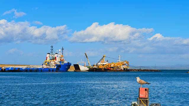 天气还是很冷的,海边的快艇而游轮都停靠在暗。