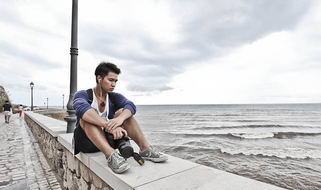 海边的垂钓者。不知道老爷爷有几条鱼上钩了。