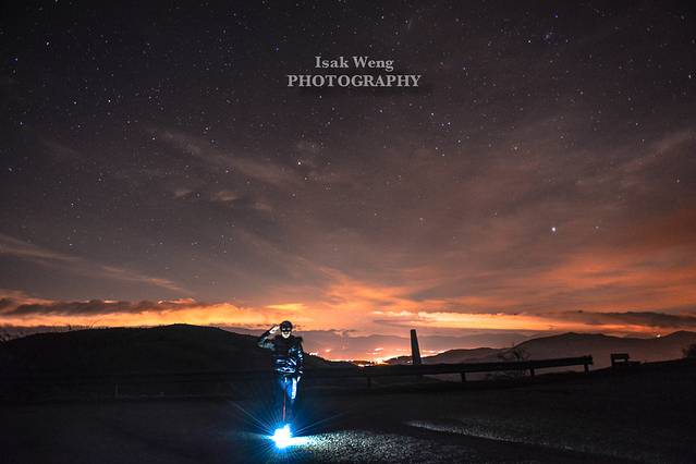 夜奔,其实是我们几个厌倦了一个星期的工作,外出撒野的一种方式。内心的烦躁,焦虑,压力等被冰凉的夜风吹得好像一无是处。再有我们向往自由,向往平静。漆黑的夜晚,宁静的周围,只能看见天上的浩瀚星河。这种状态就是我追逐的。