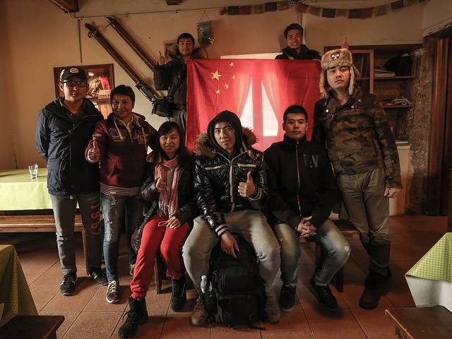 当我们来到这个休息站时,已经是满身大汗,气喘吁吁,此时这里离corno grande还有500多米的海拔吧,不过天空似乎引来了一阵乌云来搅局。因为之前我们看过这里的视频,因为很多登山客为登上corno grande在这里丧命。此时我们考虑到自己是组织者,而且队伍里还有年迈的阿姨,所以我们商议决定放弃登顶计划。