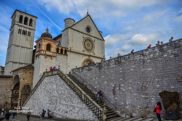 天主教圣人SAN FRANCESCO曾经生活在这里,并且创立了他独特的教派。 SAN FRANCESCO(圣弗朗西斯科),但是由于天主教早年传入中国的时候把他的名字翻译作圣方济各,所以他的教派一般被中国人称为圣方济各修会。 圣方济各在天主教界的巨大影响使得阿西西成为天主教徒心目中的圣地。据说1926年,借圣方济各诞生700周年纪念之际,共有两百万来自世界各地的信徒前来阿西西朝圣。在那个交通不甚发达的年代,这实在是一个非常惊人的数字了。阿西西在教徒心目中的地位可见一斑。 1997年,意大利中部发生地震,Basilica di san francesco(圣弗朗西斯科教堂)里的拱顶给震塌了,拱顶上大面积的壁画掉了下来。当时意大利举国心痛的,因为那不是一般的壁画,那是有着文艺复兴的开创者和“欧洲绘画之父”头衔的乔托在十三世纪绘制的。后来,意大利人花了五年的时间把这次地震震碎的十二万片壁画碎片给拼贴回去了,虽然其中还缺了不少碎片,但是大体能看出乔托的杰作当年的风采。