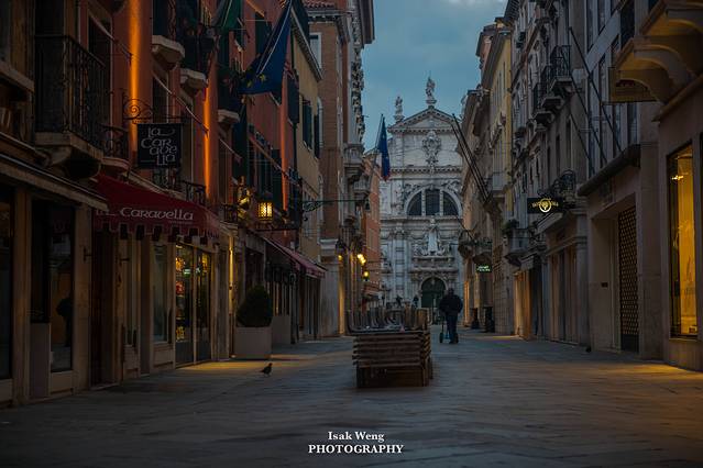 日出的光线唤醒了威尼斯的人民,大家都带狗狗出来遛圈