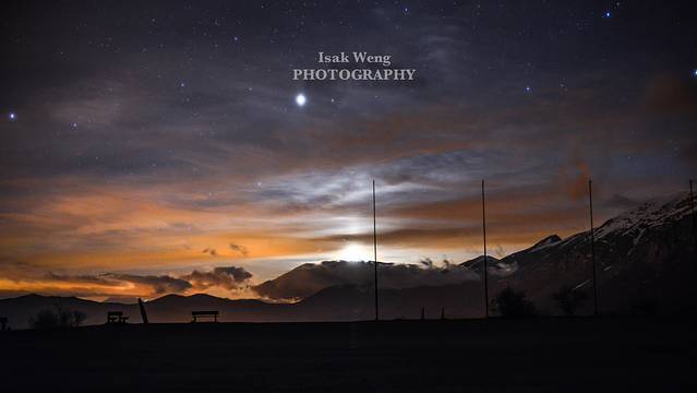 漆黑的晚上,除了星空似乎也没有什么可以去拍摄。如果意大利国家森林保护法允许,我们会在这漆黑寂静的野地,来一场别出心裁的篝火晚会。可惜不允许,大家拍完星河,在车外吃点自备的夜宵,纷纷回车里御寒了,外面温度和犀利的风,早就穿透了我的棉袄。
