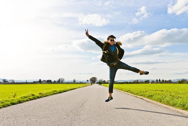 这是我的旅行照,这是自拍哦。用敬礼的方式,来正视我的旅行。