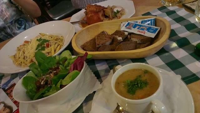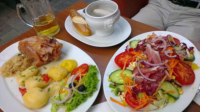 老城部分很有魅力,到处都是在上海见不到的空空荡荡。路过一个教堂,许多人正在里面虔诚地做礼拜。据说老城里的店铺也慢慢都关门了,因为年轻人更喜欢去现代化的大商场里面购物了。在这里吃到了最传统的德国家庭料理!