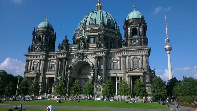 也是在菩提树大街上,总之沿着这条大街走就可以路过许许多多有名的地方。这个大教堂非常美,门口有一大片绿地喷水池,许许多多当地人在这里晒太阳、写生和各种聚会,很是悠闲。教堂里面实在是太大了,只能看个皮毛,也是可以爬到教堂穹顶上,看看周围的全景。爬上去的时候有点曲径通幽的感觉,因为都是小门,需要有探索精神。