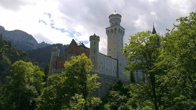新天鹅堡买票也要排长队,后来发现不是买门票而是参加讲解团的票,如果不进去参观是不用买门票的。可是参团的时间怎么也对不上,所以在外面逛逛了。