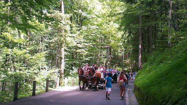 先会看到旧天鹅堡,感觉比后来看到的新的还要漂亮,黄色的城堡耸立在山野之上,可以远眺。到新天鹅堡需要爬一段小山,于是有人选择坐马车,爬上去一看,竟然周围都是脚手架,完全没有任何美感可言,这就是旅游景点的卸妆照吗?