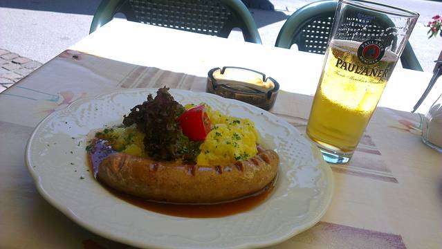 这个从高中起就是梦想之地,但一般梦想之地一旦到达了,也就不再是梦想之地了。新天鹅堡最有名的图片就是那张白色的雪景照,简直就是王子和公主幸福生活着的地方嘛,也是迪斯尼乐园的睡美人城堡还有其他现代童话城堡的灵感来源。从到Fussen的火车上就开始遇到游客尤其是亚洲游客,感觉自己也顿时回到了游客身份。到达已经是中午了,赶快先吃点东西,还能吃什么呢?土豆加香肠。