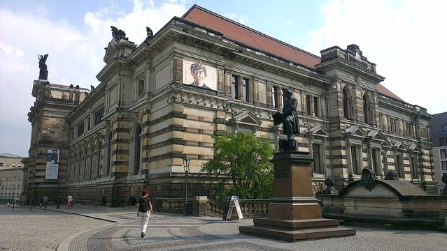 布吕尔平台是一个深受本地人和游客喜爱的散步、观赏和喝咖啡的地点。我们是随便乱逛,跟着大多数人到处走,就从平台西端的城堡广场进入了平台,从这里可以眺望到许多教堂和著名的森伯歌剧院。