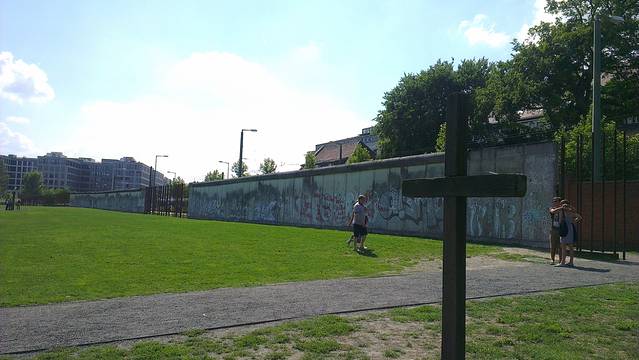 这是每一个到柏林的旅游者必定要去参观瞻仰一下的地方吧。历史太长,就不在这里百度百科了。我们去了两个关于柏林墙的有名的地方,第一个是柏林墙遗址纪念公园Gedenkstätte Berliner Mauer,第二个就是著名的查理检查站check point。