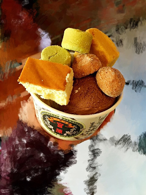 宫原眼科冰淇淋是鼎力推荐的,150nt满满两球,还可任选三种配料,配料都是一整颗凤梨酥、半根香蕉、一块乳酪蛋糕那么实在。乳酪蛋糕真的非常好吃,凤梨酥的内陷能看到果肉。
