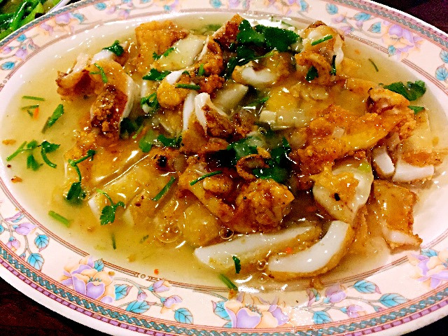 ◆月亮虾饼:看似薄薄的煎饼,竟蕴藏着弹力十足的虾泥内陷,外皮炸的酥脆,淋上特调酱汁,实在美味。